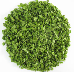 FD蔥是以新鮮九條蔥為原料加工而成,水分在5%以下。經真空冷凍干燥的大蔥為10mm的段狀,食用口感具有顯著的九條蔥味,香氣濃郁,用90℃以上熱水60秒內復水完全,適用于湯料或快食面類配料。